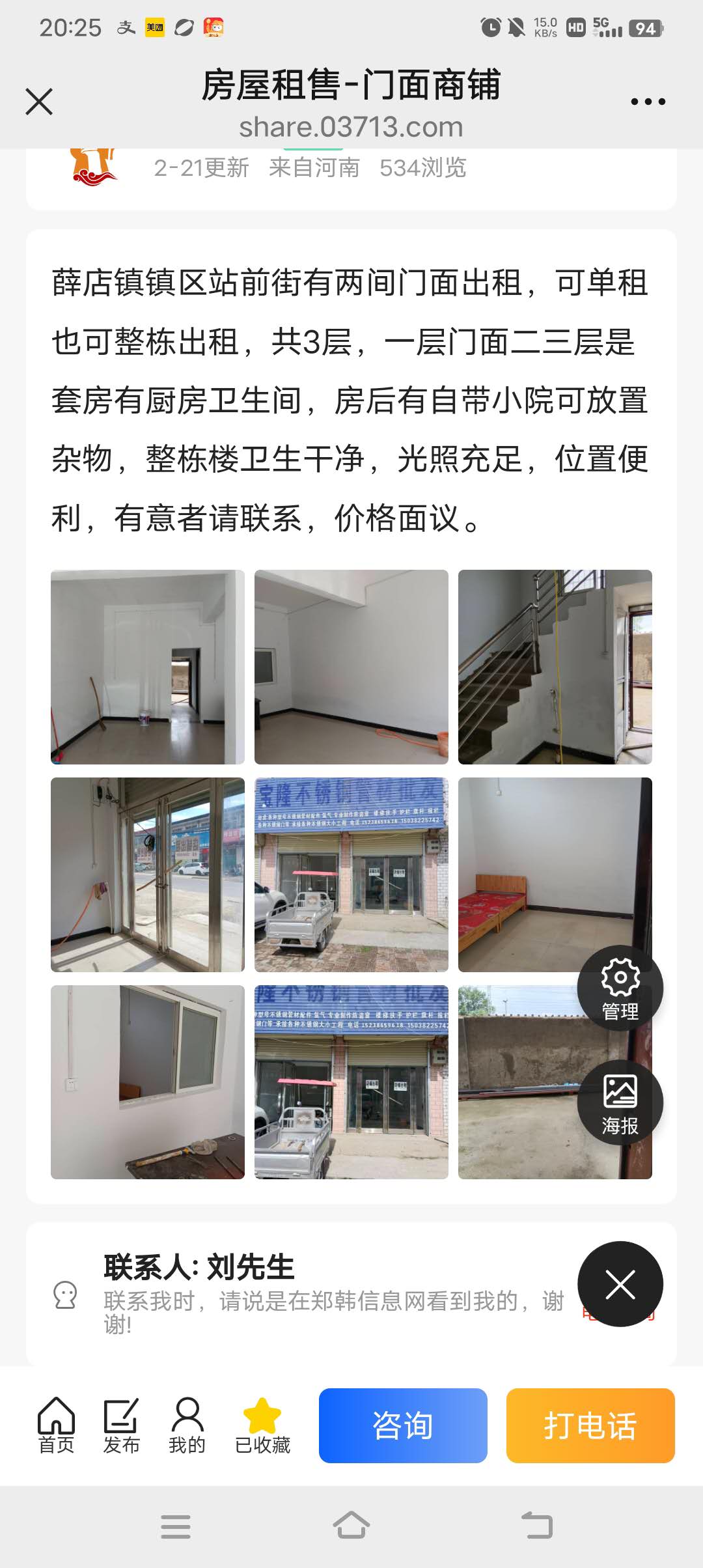 新郑市人民路康庄大道路南有一处门面房出租,附近小学,中学,三10-13 146浏览门面商铺