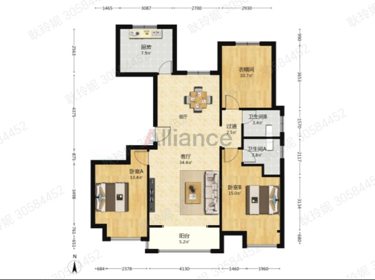 出售宾悦龙城2号楼304 140平方三室两厅两卫,南侧611-22 666浏览房屋出售